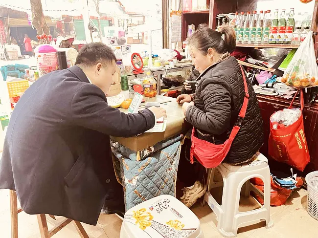 在商户门店里,上门维护的暖心画面正一幕幕上演。信用社工作人员说明来意后,便细致地检查起商户使用的收款码牌。他不仅对码牌进行了物理状态的“体检”——更换磨损标签、加固码牌封装,更完成了一次系统性的“数字把脉”,确保交易链路稳定无忧。