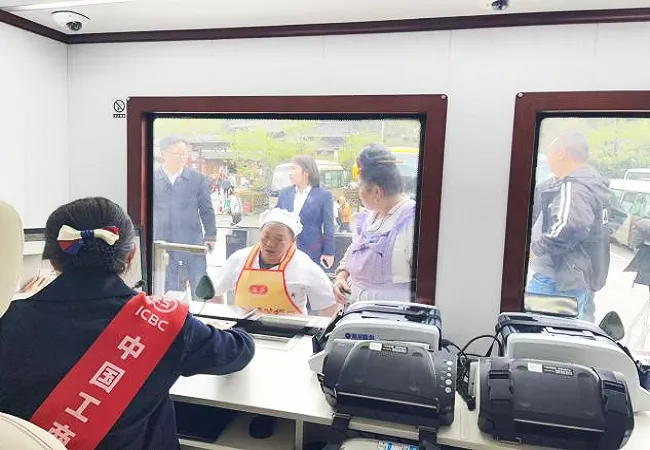 西江旅游集团作为西江千户苗寨景区核心运营企业,员工数量多、日常工作繁忙,员工集中前往银行网点办理工资卡及相关业务,不仅耗时费力,还会影响企业正常运营节奏。了解到企业这一实际需求后,该行第一时间与企业对接沟通,详细摸排员工办卡需求,量身定制专项上门服务方案,精心调配人员与设备,启用功能齐全的流动银行车,将标准化的银行柜台直接搬到企业办公现场,实现“企业零跑腿、员工就近办”的一站式金融服务。