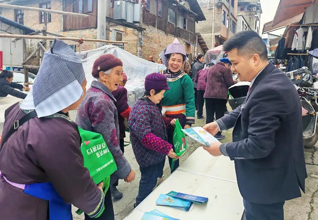 在热闹的集市上,平永信用社的工作人员化身“金融宣传员”,通过发放宣传折页、面对面讲解、现场答疑等多种形式,用通俗易懂的语言,结合当地少数民族方言,采用“汉+侗”“汉+苗”“汉+水” 双语宣讲模式,向村民们细致普及存款保险的保障范围、保障额度、赔付流程等核心知识,让原本专业的金融知识变得“听得懂、记得住、用得上”,真正打通了少数民族地区金融知识宣传的“最后一公里”。