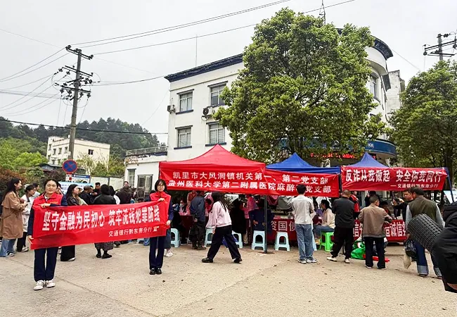 2026年4月13日,交通银行黔东南分行携手贵州医科大学第二附属医院走进凯里市大风洞镇,联合开展“金融护平安・义诊送健康”主题宣教活动,将反洗钱、远离非法集资、防范电信网络诈骗等金融知识与便民医疗服务送到群众家门口。