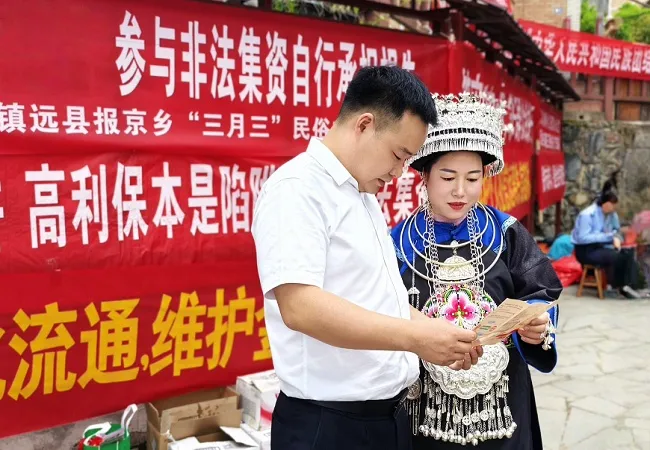 报京“三月三”是报京侗族人民除春节外最隆重的传统节日,2014年被列入第四批国家级非物质文化遗产代表性项目名录,涵盖祭树祈福、讨葱定情、芦笙舞表演、侗家长桌宴等丰富民俗活动,是展现北侗民族文化魅力、凝聚群众情感的重要载体。此次宣传活动,镇远农商银行报京支行立足民族地区群众实际需求,打破传统宣传壁垒,将金融知识普及与民俗节庆深度融合,让金融宣教既有“烟火气”更有“文化味”,切实打通金融知识普及“最后一公里”。